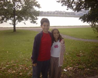 Bruder und Schwester am Rhein, Mannheim Aug.2002